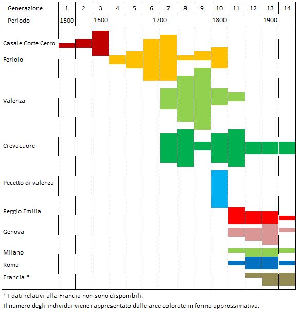 generazione per generazione, divisi per luogo di residenza. Nella prima
